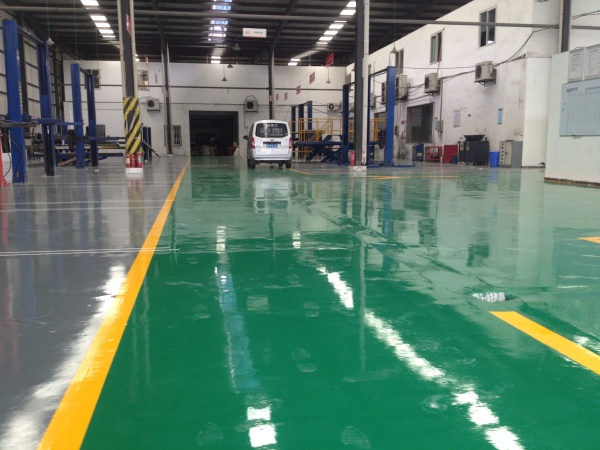 面涂焕色:滚涂高耐磨环氧面漆,搭配黄色标线划分功能区域。