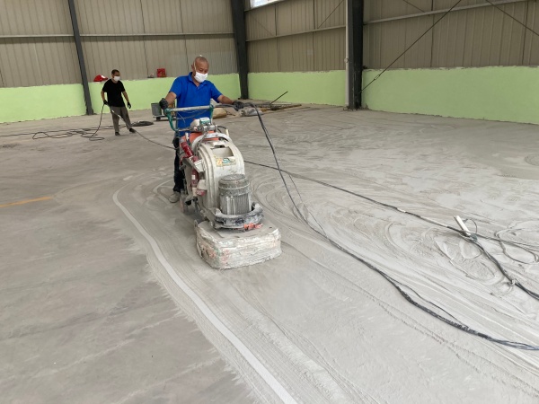 大邑金微健饲料厂完成环氧地坪施工升级:从原始粗糙水泥地,经专业研磨、基层清洁、多层环氧涂层铺设等工序,最终呈现出光亮洁净的绿色地坪。