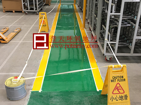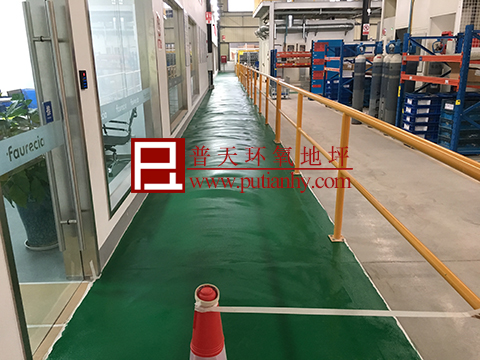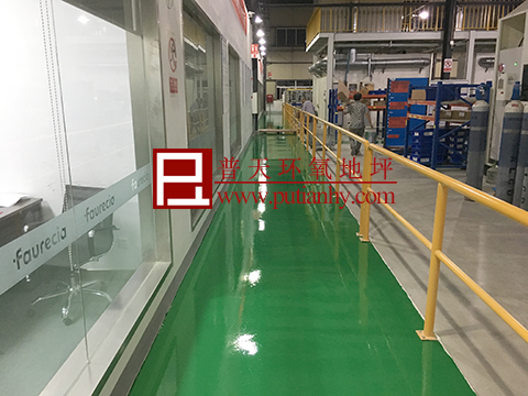 佛吉亚汽车配件公司是一家法资公司,其车间原有的水泥地坪不能满足其美观性和使用要求,特邀我司对其通道区域施工环氧砂浆地坪。
