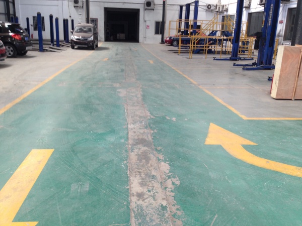 斑驳起皮的旧地坪、磨损的标线,曾是北汽幻速某车间的 “旧貌”。负责人联系我们进行了环氧地坪翻新工程让这里焕然一新 —— 从基层打磨到漆面焕亮,仅用数日便完成了 “颜值 + 性能” 的双重升级。