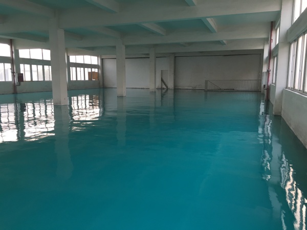完工后地面呈亮蓝色,无缝光滑、耐酸碱易清洁,既契合医药车间卫生标准,也能承载生产作业损耗,为企业筑牢洁净生产环境的地面基础