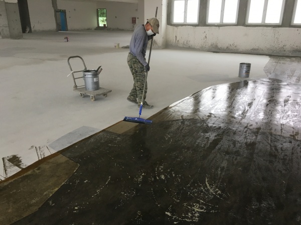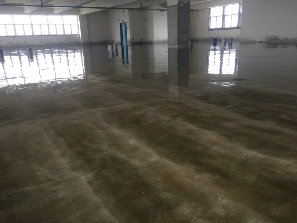 项目始于空旷的毛坯场地,施工团队首先对粗糙的水泥地面进行清洁与找平,再均匀涂刷环氧底漆以增强附着力。随后,通过调色面漆的分层施作与艺术化打磨,地面呈现出深浅交织的斑驳纹理,自带复古工业质感,与卡尔中心的现代简约设计理念高度契合。